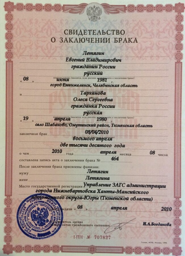 Свидетельство о смене фамилии