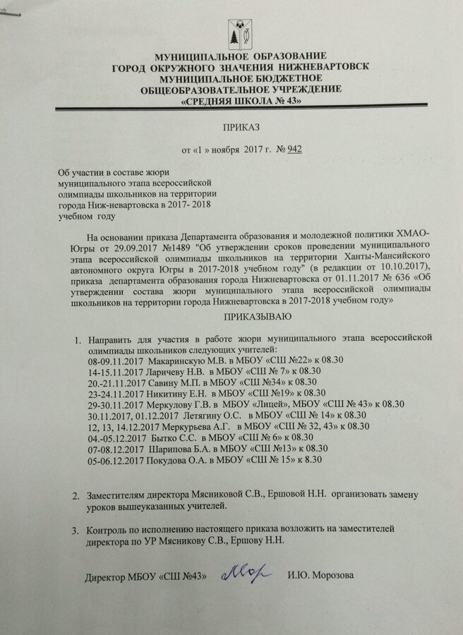 Участие в составе жюри муниципального этапа всероссийской олимпиады школьников 2017-2018 год